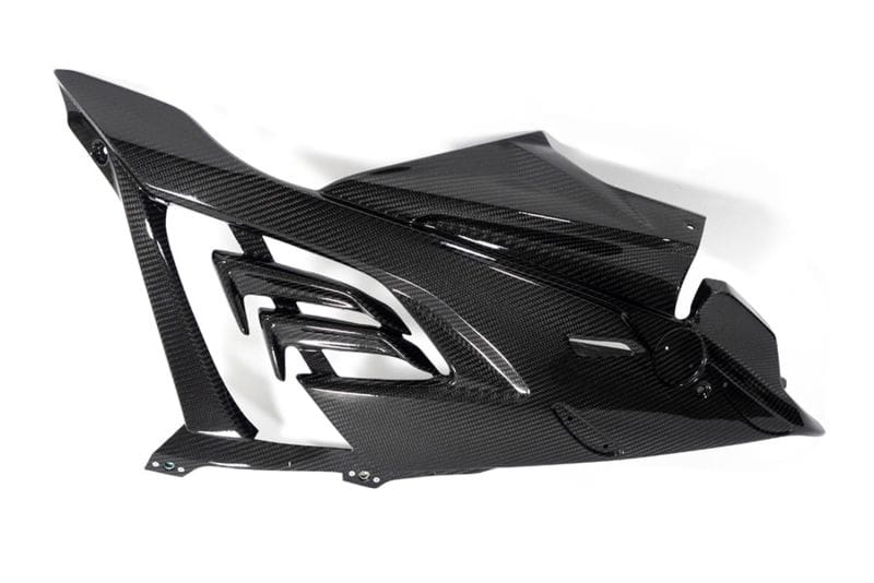 Dit carbon onderdeel vervangt het originele onderdeel met behulp van de originele bevestigingspunten.