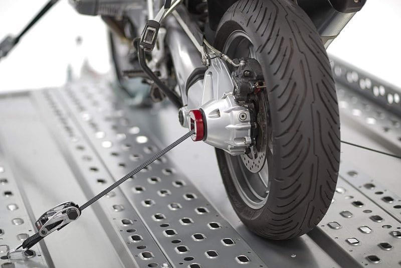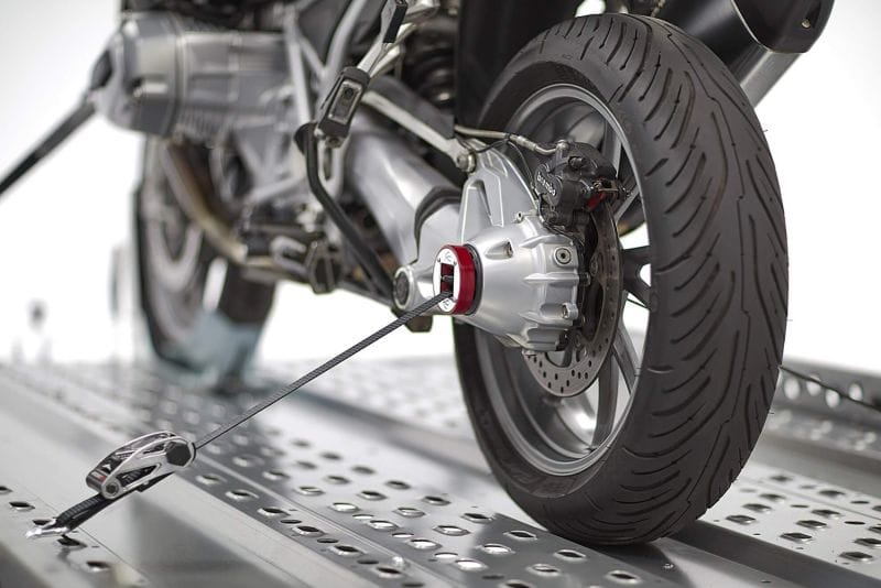 Dit sjorsysteem beschermt het chassis omdat de achterschokdemper tijdens het vastsjorren niet hoeft te worden ingedrukt om een veilige grip te garanderen. Direct aan het achterwiel vastsjorren met korte spanbanden vermindert ook de neiging van het sjorsysteem om te verzakken (los te laten) – iets wat wel kan gebeuren bij conventionele sjorsystemen aan het chassis, waardoor de vering wordt ingedrukt. De spanning van de banden moet daarom vaker worden gecontroleerd dan bij dit systeem.