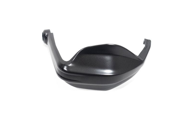 De carbon handkappen voor de Ducati Mulstistrada V4 vervangen het originele onderdeel met behulp van de originele bevestigingspunten.