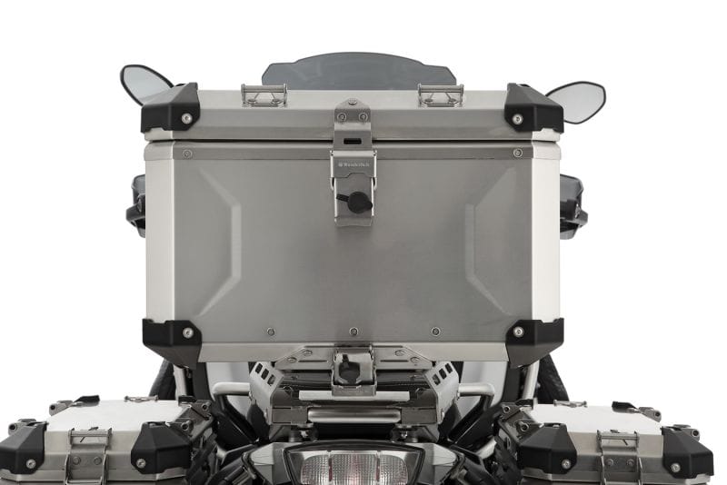 Dankzij de extra bevestigingsogen op het deksel kan extra bagage, zoals onze topkoffer “Elephant”, veilig worden vastgemaakt. Het deksel van de topkoffer is standaard voorzien van een praktisch bagagenet aan de binnenkant, voor alles wat u onderweg bij de hand wilt hebben: regenkleding, gereedschap of een EHBO-doos.