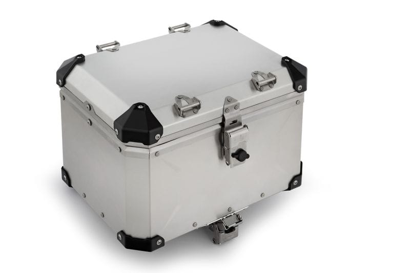 Of je nu over de snelweg reist, naar de Noordkaap of door de Namibwoestijn, deze robuuste, lichtgewicht en stijlvolle EXTREME aluminium topkoffers gaan door dik en dun met je mee! Dankzij het snelspansysteem zijn ze eenvoudig op de bagagedrager te bevestigen. Dankzij het speciale afdichtingssysteem zijn ze volledig stof- en waterdicht. Het consequente gebruik van uitsluitend hoogwaardige materialen garandeert de lange levensduur van ons EXTREME bagagesysteem. Dit wordt gewaarborgd door de 1,2 mm dikke aluminium plaat met stabiliserende kralen (gewichtsgeoptimaliseerd en toch robuust), de roestvrijstalen fittingen en de vervangbare bescherming rondom op alle hoeken.