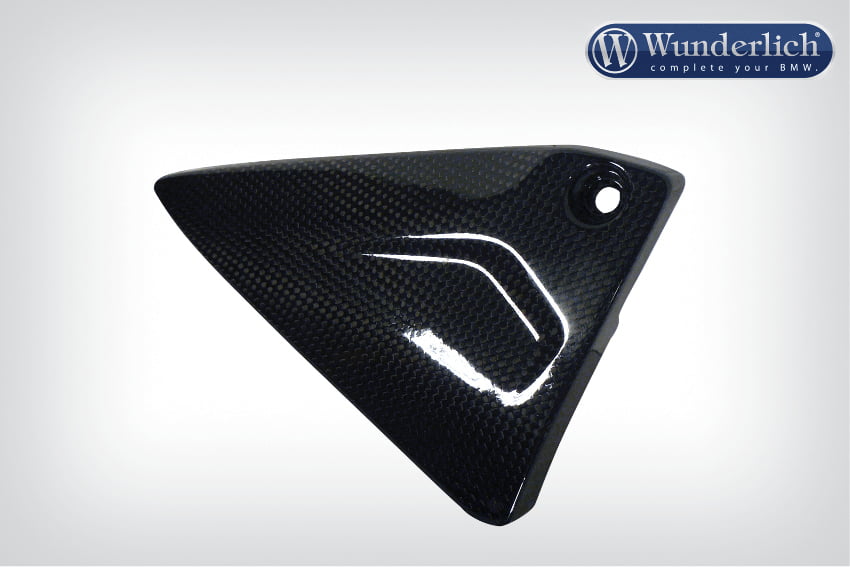 Het ruimtemateriaal laat zijn volledige potentieel zien met een gewichtsbesparing tot 70% in vergelijking met het standaardonderdeel en met zijn gewichtsspecifieke stijfheid. De vorm volgt de functie en integreert optimaal in het ontwerp van de motorfiets. Er wordt rekening gehouden met de lijnen van de betreffende machine, evenals met het materiaal en de oppervlaktetextuur van aangrenzende seriecomponenten. Dit carbononderdeel onderstreept de hightechnormen van uw BMW met de unieke uitstraling van echt carbon.