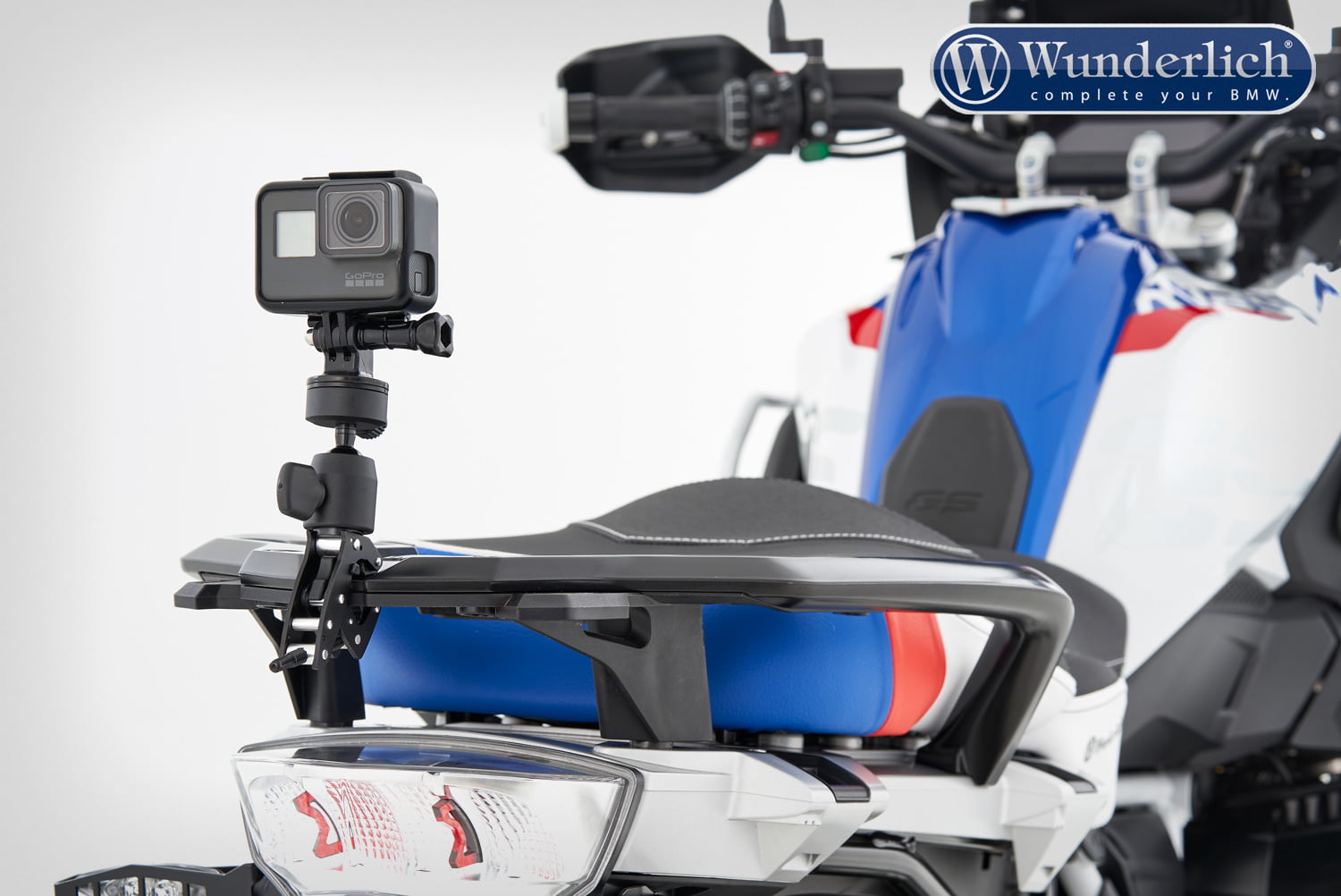 De innovatieve, veelzijdige ActionCam-houder die in combinatie met de universele klem» MultiClamp «eenvoudig en betrouwbaar kan worden bevestigd aan bijvoorbeeld het stuur, de tank- en motorbeschermbeugel of aan de bagagedrager.