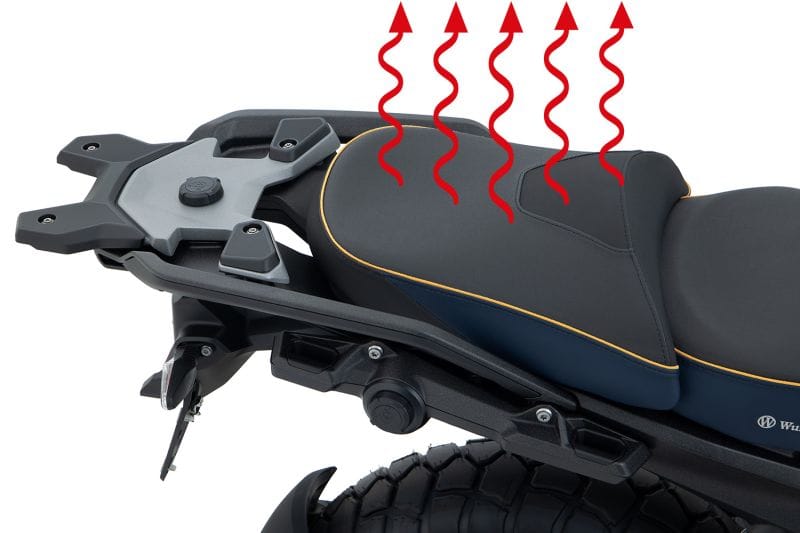 Wij produceren onze passagierszadels met een kenmerkende, ergonomische 3D-contour. De vorm en hoek van de zorgvuldig vervaardigde zadelkern ondersteunen een ergonomisch gunstige, natuurlijke bekkenpositie. Een bijzonder kenmerk van ons passagierszadel is de geïntegreerde steuncontour aan de voorzijde, die extra veilige ondersteuning biedt tijdens het remmen. Doordat het zadel zo in de motorfiets is geïntegreerd, is het rijden ontspannen en daardoor actiever. En een ontspannen zithouding verhoogt ongetwijfeld de passieve veiligheid. Dit AKTIVKOMFORT-zadel is voorzien van de nieuwste Thermo Pro- technologie, die de temperatuur van het zadeloppervlak in direct zonlicht tijdens de warmste zomermaanden tot wel 25 °C verlaagt ten opzichte van conventionele bekledingsmaterialen. Wij bieden ook een bijpassend bestuurderszadel aan.