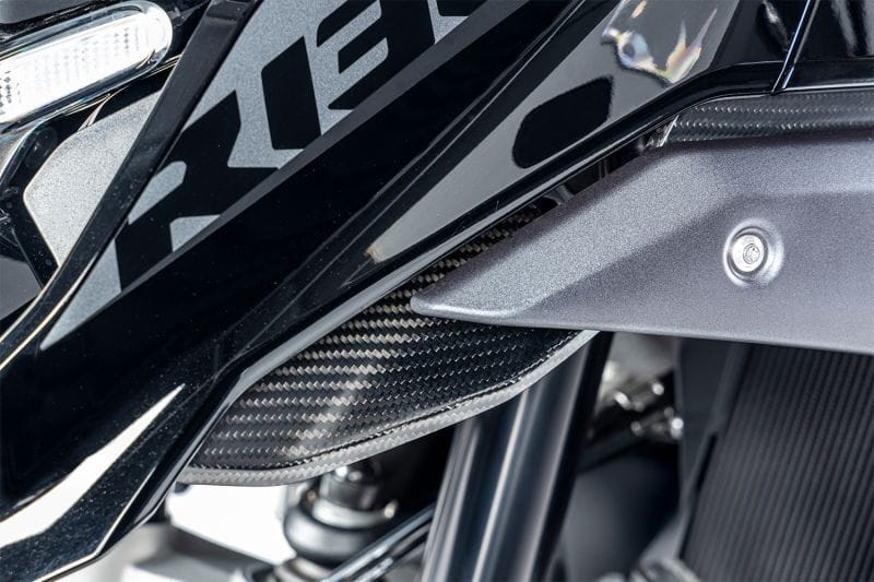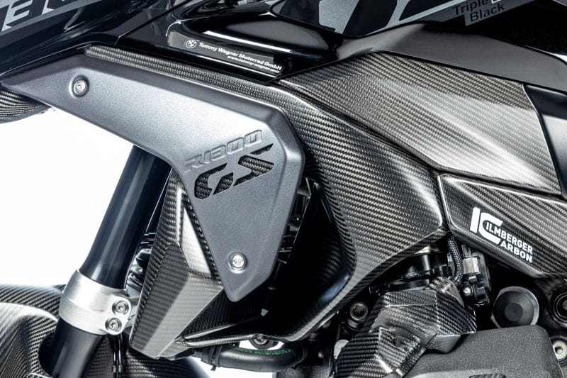 Dankzij de prominente, centrale positie op de motor voegt hij een stijlvol accent toe en geeft hij je motor een dynamische touch. Tegelijkertijd beschermt hij de radiator tegen vuil en beschadigingen. De afdekking is gemaakt van hoogwaardig koolstofvezel, dat licht en stabiel is en tegelijkertijd een elegante uitstraling heeft. Vergroot de herkenbaarheid van je BMW R 1300 GS en geef hem een luxueuze touch – met de luchtinlaatafdekking van Ilmberger Carbon.