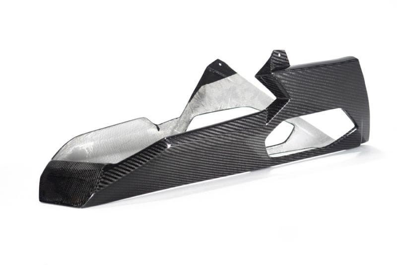 Ook de typische lange motorspoiler van Ilmberger, gemaakt van hoogwaardig autoclaafkoolstof, mag niet ontbreken bij de M1000RR. Dankzij speciale hars en geïntegreerde hittebescherming ligt de motorspoiler binnen enkele mm van de voordemper. De kuip ziet er completer uit en de originele uitlaat oogt subtieler.