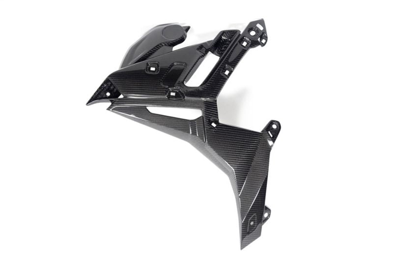 Het ruimtemateriaal laat zijn volledige potentieel zien met een gewichtsbesparing tot 70% in vergelijking met het standaardonderdeel en met zijn gewichtsspecifieke stijfheid. De vorm volgt de functie en integreert optimaal in het ontwerp van de motorfiets. Er wordt rekening gehouden met de lijnen van de betreffende machine, evenals met het materiaal en de oppervlaktetextuur van aangrenzende seriecomponenten. Dit carbononderdeel onderstreept de hightechnormen van uw BMW met de unieke uitstraling van echt carbon.