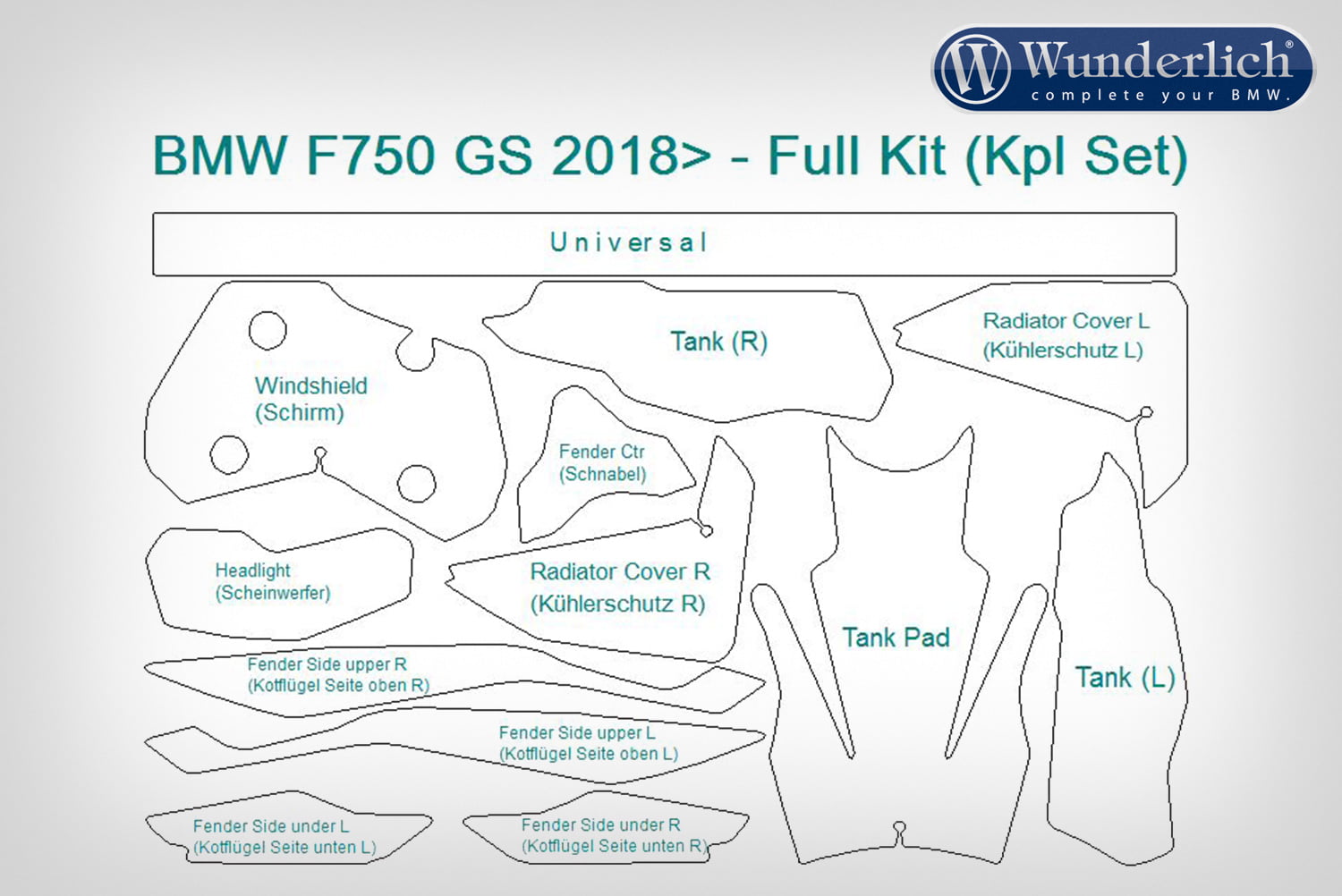 - Complete set bestaande uit tankset en folies voor bijna alle kwetsbare onderdelen: lambrisering, spatborden, zijkappen.