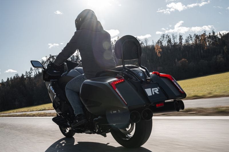 Het REMUS Custom Quad Exhaust-systeem is vervaardigd uit hoogwaardig roestvrij staal en bovendien voorzien van een zwarte hittebestendige coating, wat een duidelijk contrast vormt met de standaard chromen look. Het ontwerp- en ontwikkelingsdoel van REMUS was om een uitlaatsysteem te bieden met een sportieve, dynamische look die perfect integreert met de algehele aerodynamische uitstraling van de motorfiets. Het REMUS Custom Quad Exhaust-systeem geeft de bagger het REMUS-typische, rijke geluid dat bij hoge toerentallen transformeert in een waar gebrul. Voortbouwend op het succes van de REMUS sportuitlaatsystemen voor de BMW K 1600 GT en de GTL-serie, werd het geluid individueel afgestemd op de wensen van de doelgroep.