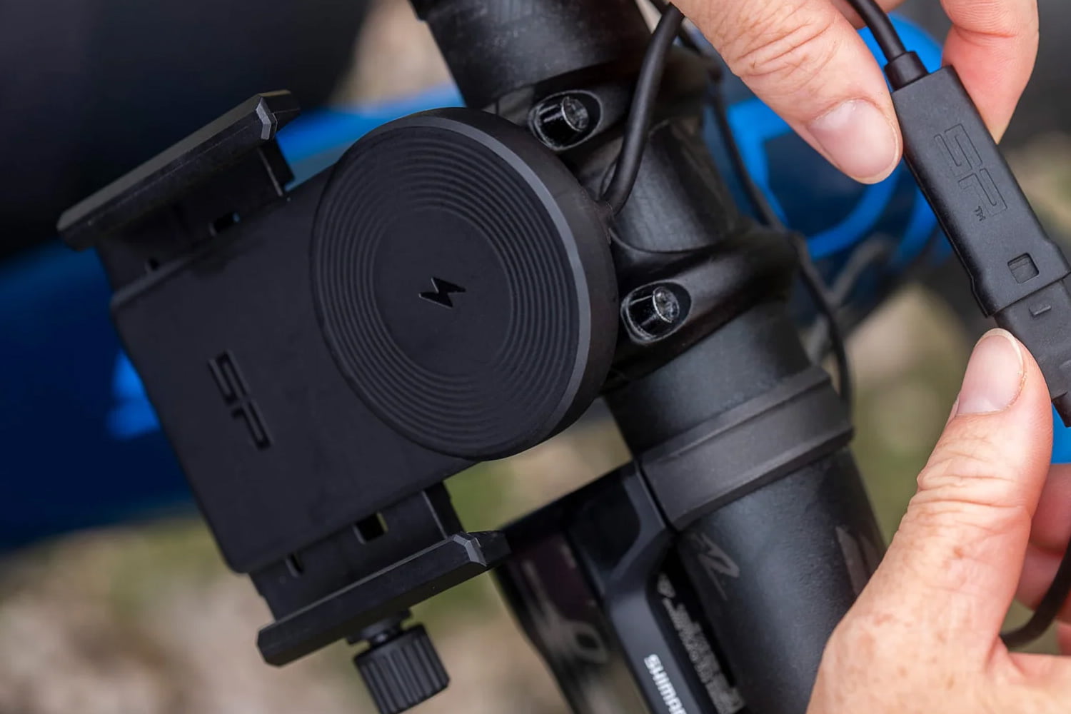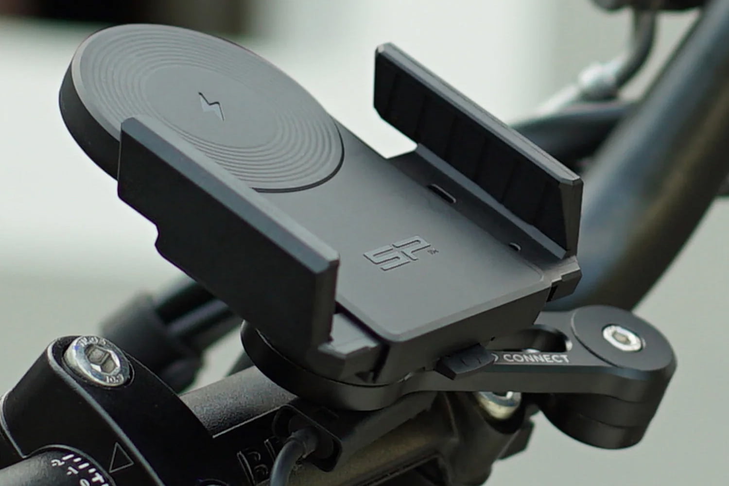 De Charging Clamp Mount ondersteunt ook draadloos opladen. Voorzie de inductieve oplader eenvoudig van stroom via de motor, e-bike accu of een powerbank en laad uw mobiele telefoon draadloos op. Batterij leeg onderweg? Vanaf nu geen optie meer.