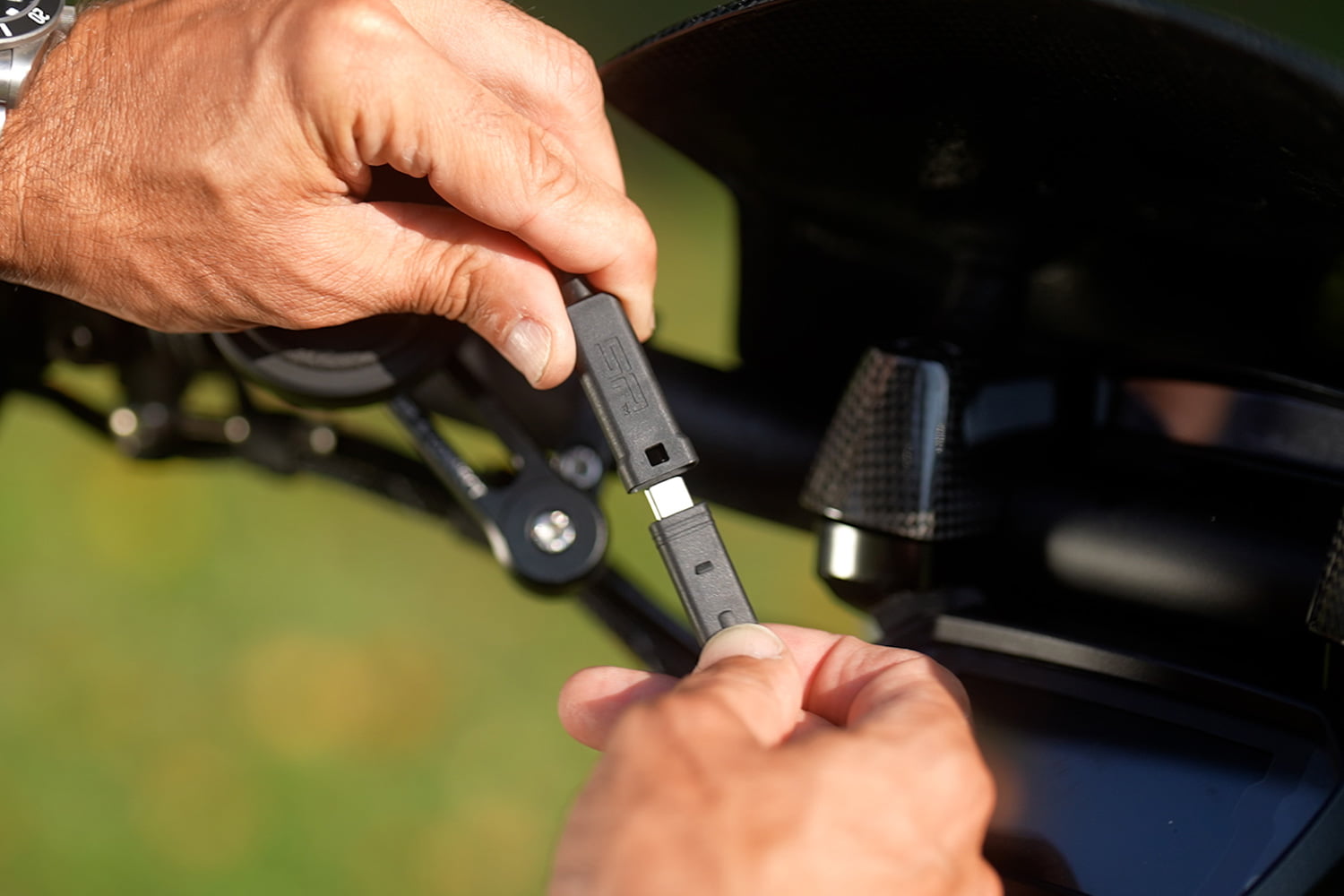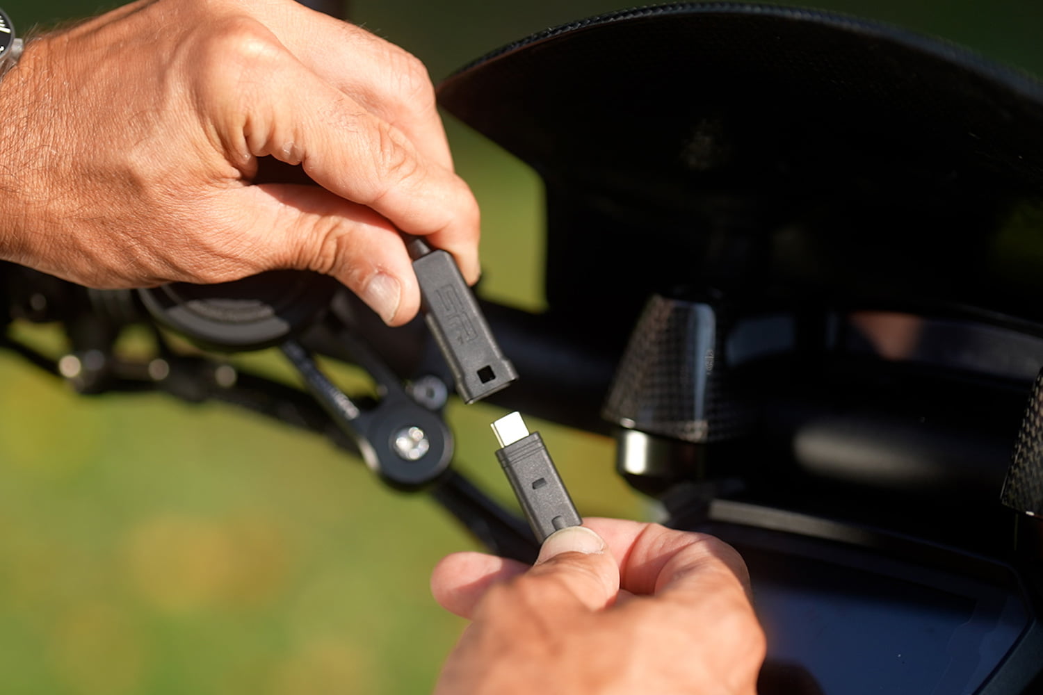 Gebruik de SP Connect-voedingskabel om de SP Connect-adapter voor inductief opladen rechtstreeks op een stroombron aan te sluiten (bijv. motorfietsaccu/ontsteking of e-bikemotor/lamp)