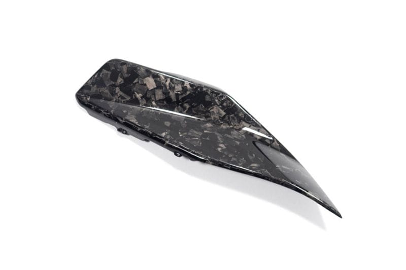 Dankzij de hoogwaardige uitstraling komt dit zeer zichtbare gebied in het midden van de motorfiets perfect tot zijn recht. De onderste tankcover kan afzonderlijk worden gemonteerd, maar is ook perfect te combineren met de bovenste tankcover. Zo creëert u uw eigen look en onderscheidt u zich van de massa. Hierbij wordt gebruikgemaakt van het innovatieve BDC-materiaal, dat het onderdeel een volledig nieuwe en individuele touch geeft. Het oppervlak van het BDC-onderdeel is voor elk onderdeel uniek en doet denken aan marmer. De BDC wordt eveneens met de hand gelamineerd bij Ilmberger en in meerdere fasen uitgehard in een autoclaaf. Het materiaal overtuigt niet alleen door zijn spannende uiterlijk, maar ook door zijn technische eigenschappen. De verschillende vezels verstrooien het invallende licht en creëren een tot nu toe onbekende reflectie.