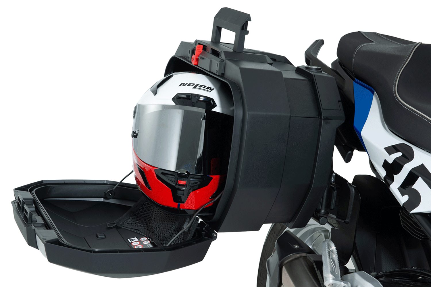 Het innovatieve Smart Lock-sluitsysteem van de Vario-koffers biedt maximale veiligheid en gebruiksgemak. De koffers kunnen binnen enkele seconden worden geopend, gesloten en aan de motorfiets worden bevestigd of ervan worden verwijderd. Bovendien maken de geïntegreerde, uitklapbare handgrepen de Vario-koffers gemakkelijk te dragen.