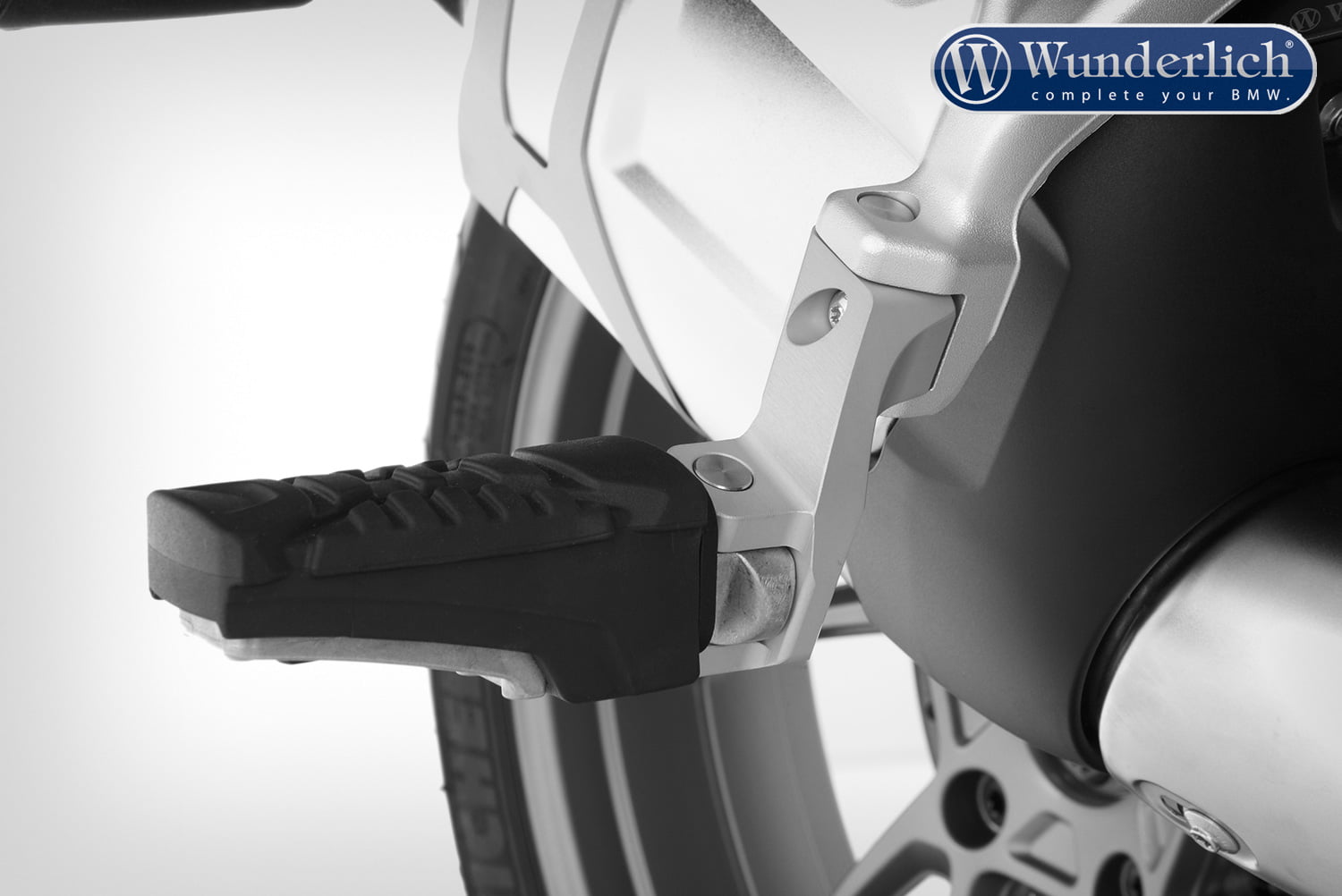 Wunderlich verlaging van de passagiersvoetsteun voor BMW R 1200/1250 GS LC en BMW K 1600 GT voor een hoger zitcomfort en ontspannen reizen