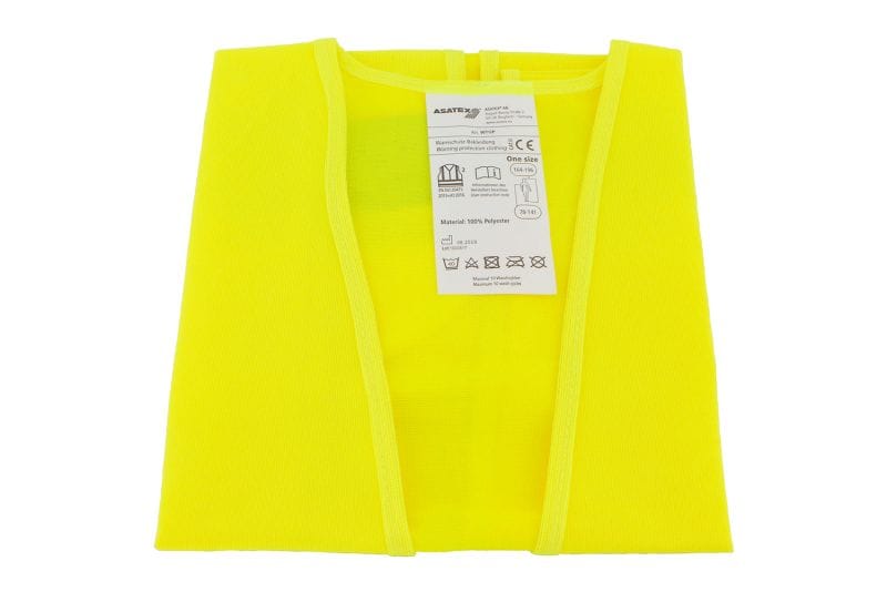 Veiligheidsvest met hoge zichtbaarheid dat weinig ruimte inneemt wanneer het is opgeborgen.