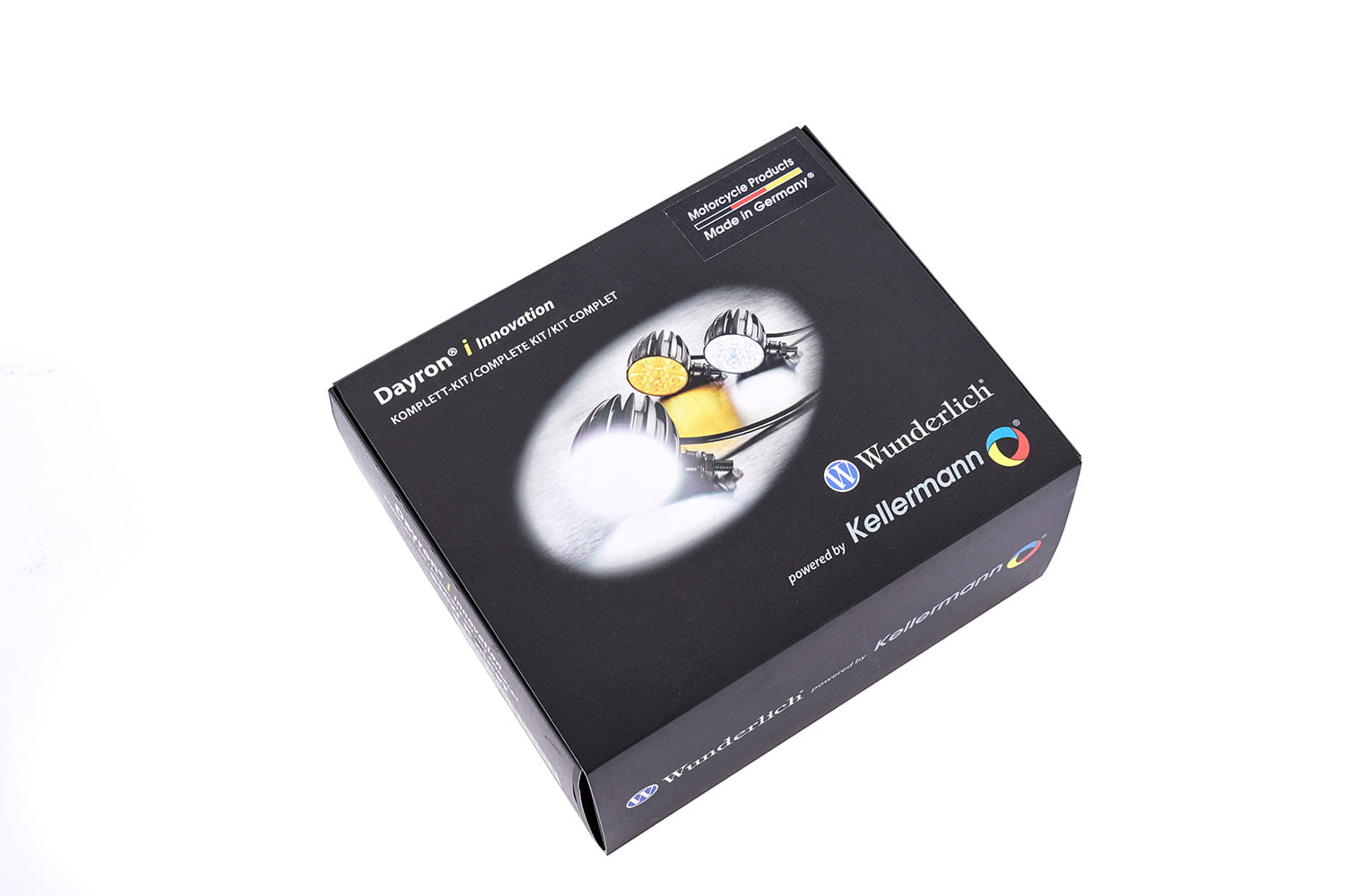De extreme lichtopbrengst van de Kellermann DAYRON® HighPower LED-technologie van het geïntegreerde LED-dagrijlicht en knippersysteem, samen met de unieke, briljant verlichte oppervlakken van de uitstekende, innovatieve lenstechnologie, zorgt voor een optimale zichtbaarheid in het verkeer en bij het knipperen. De opstelling van de innovatieve LED-dagrijlichten vergroot optisch het silhouet van de voorkant en het uiterlijk van de motorfiets. Het knippersignaal bij het afslaan of inhalen is zeer opvallend.