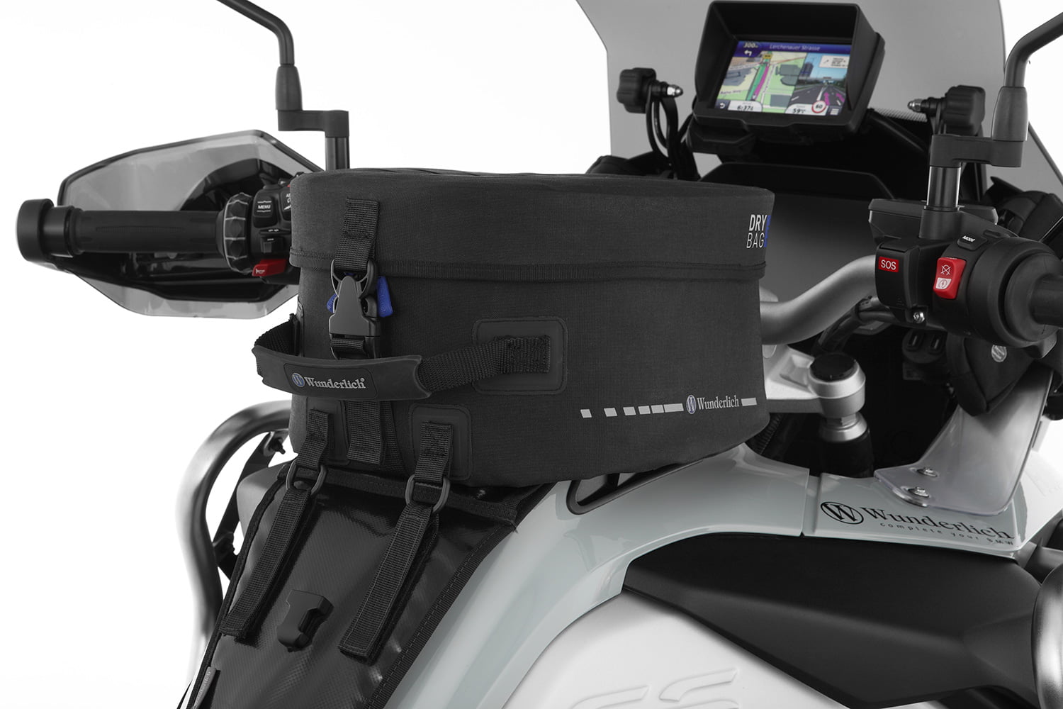 De DRYBAG-tanktas wordt bevestigd met onze beproefde »ELEPHANT« -systeembeugel. Gedemonteerd kan onze tanktas »ELEPHANT« DRYBAG gemakkelijk aan het handvat worden gedragen.
