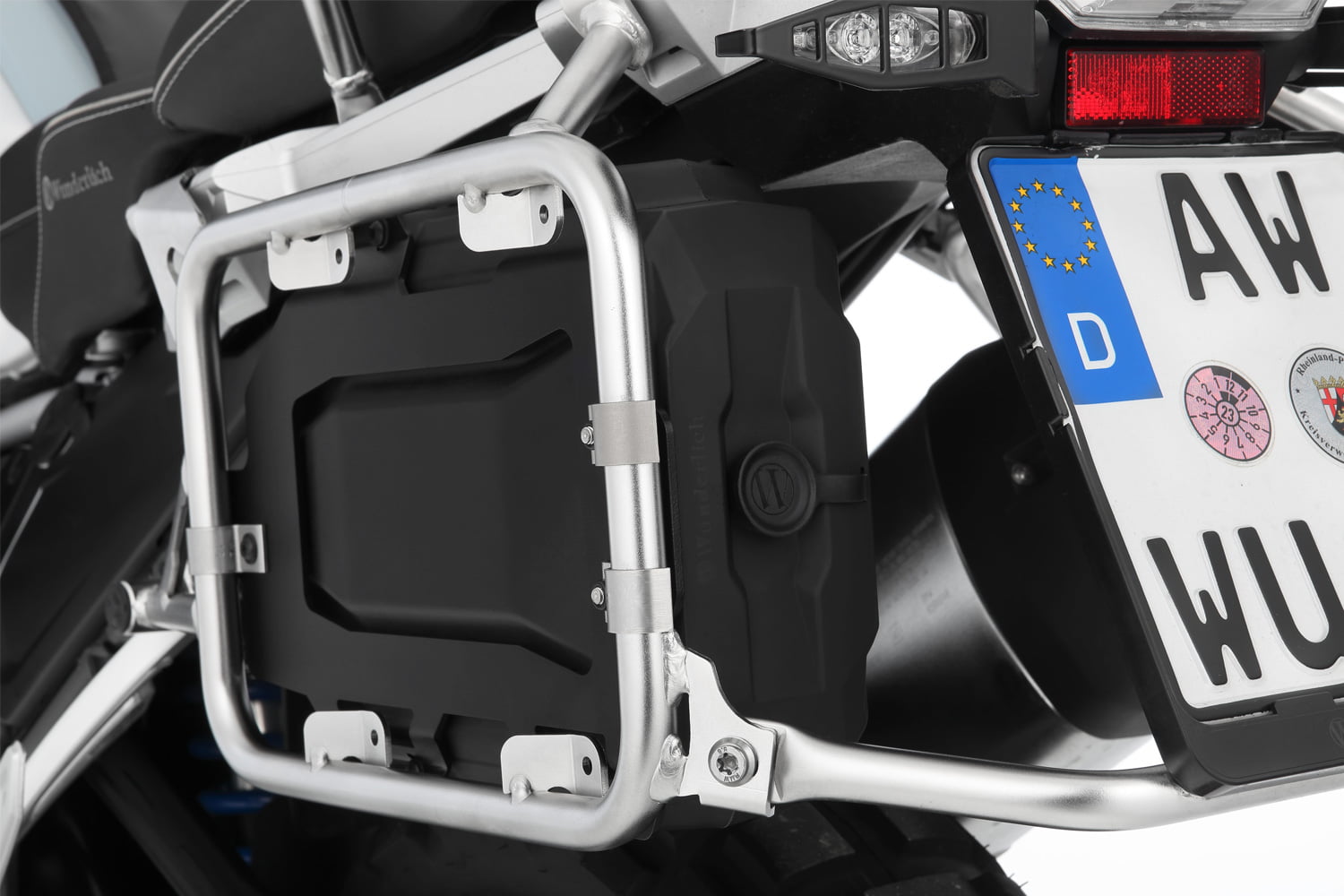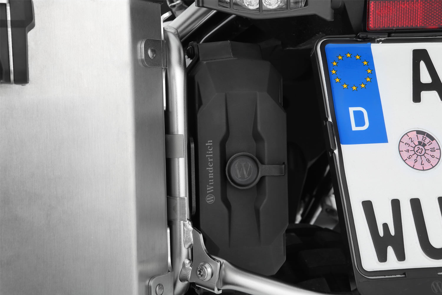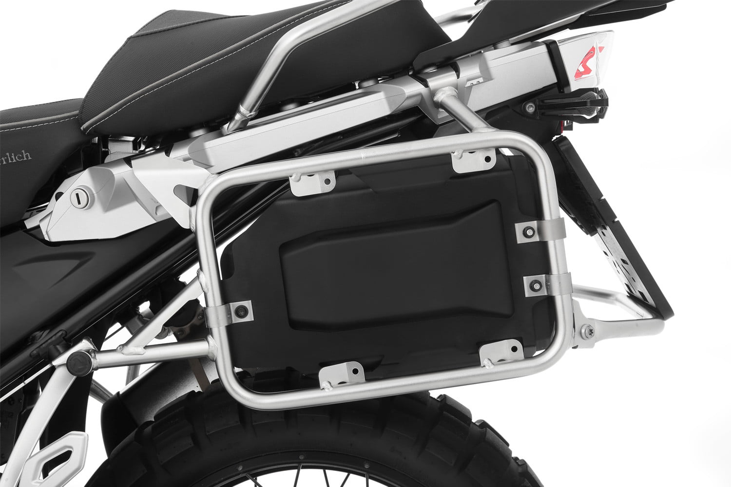 Onze op maat gemaakte gereedschapskist biedt extra opbergruimte voor allerlei handige kleine dingen en integreert perfect in de nis tussen het rechter bagagerek en het achterwiel. De functionele, robuuste box is voorzien van vier massief schroefdraad inzetstukken en wordt met een houder en bijpassende klemmen stevig op de standaard kofferdrager gemonteerd. Om altijd gemakkelijk toegang te hebben, kan het van achteren worden geopend en gesloten – zelfs met de koffers gemonteerd. De dekking is beveiligd tegen verlies. De box van hoogwaardig kunststof is waterdicht en extreem robuust. Wij leveren ze met de houder.