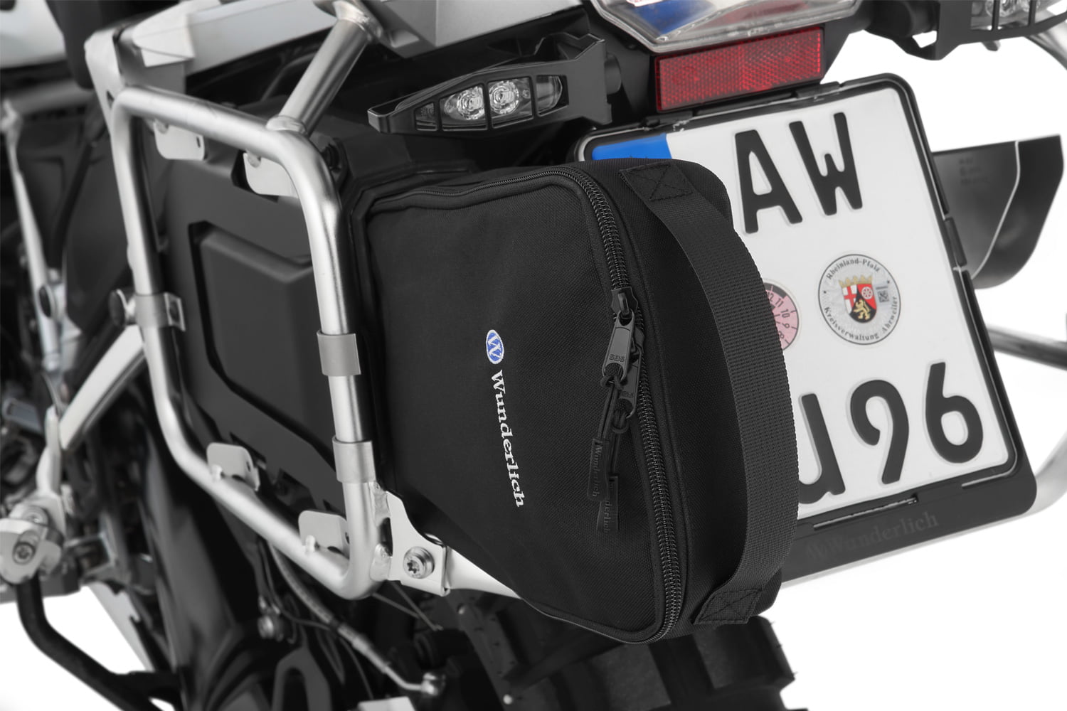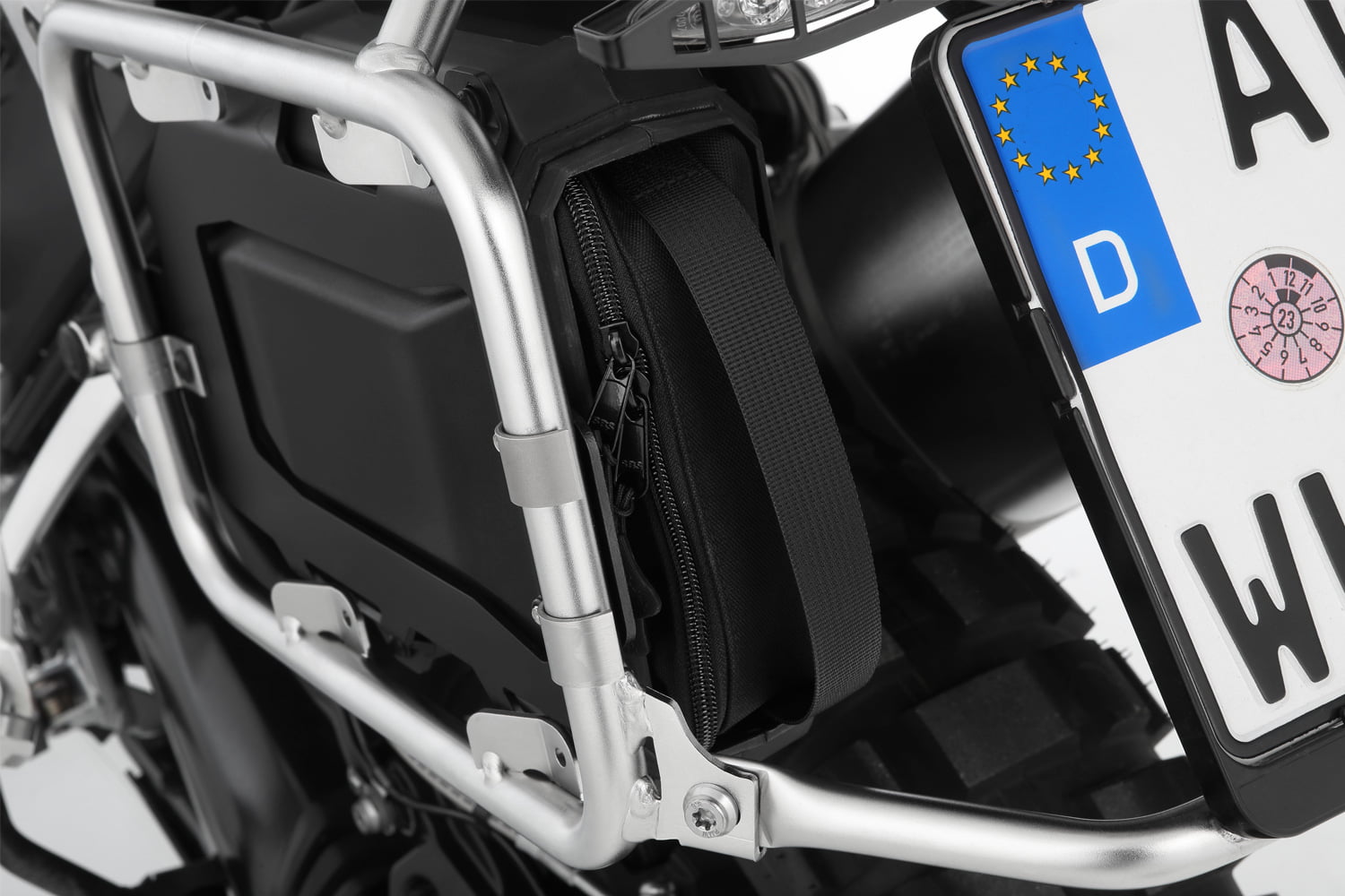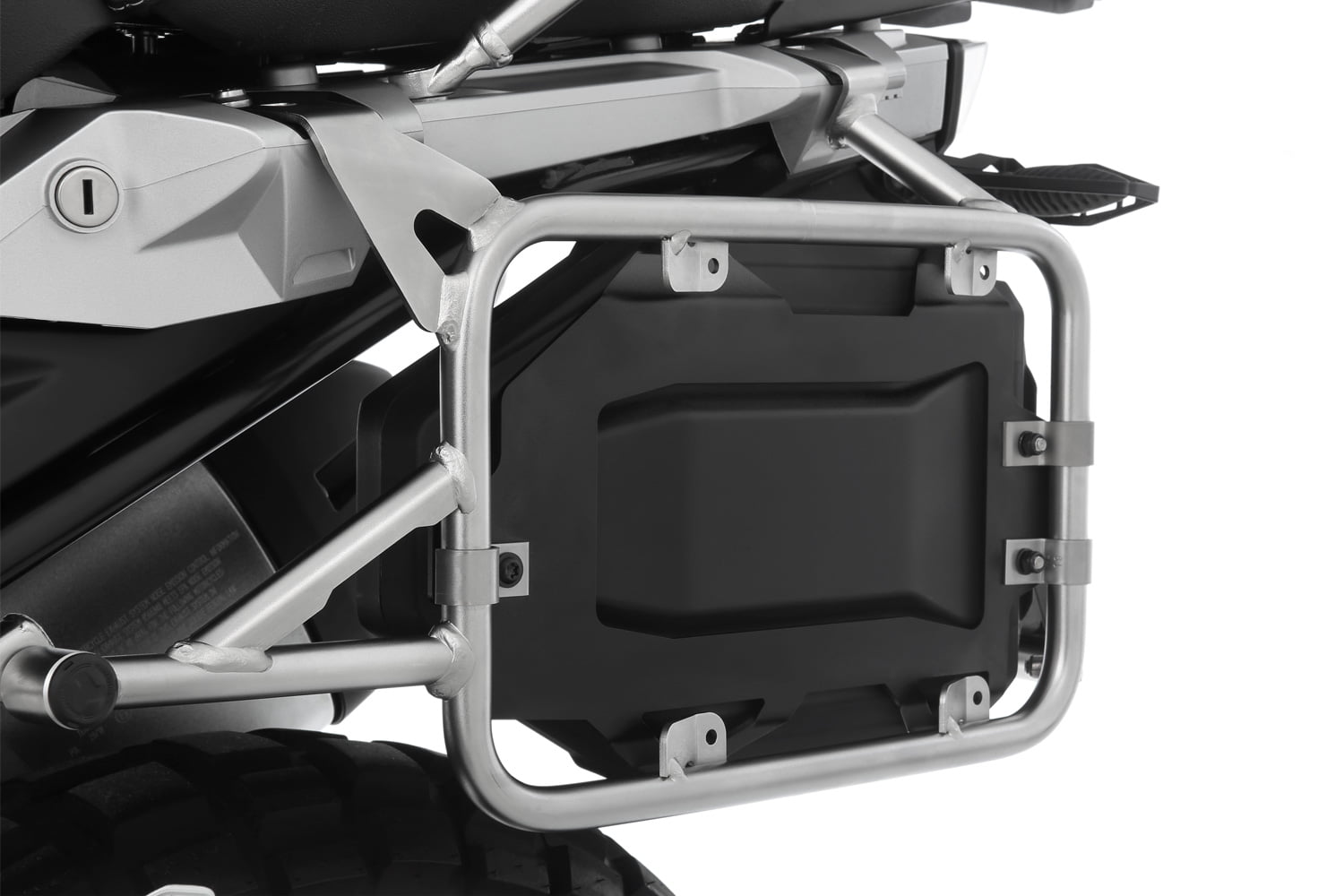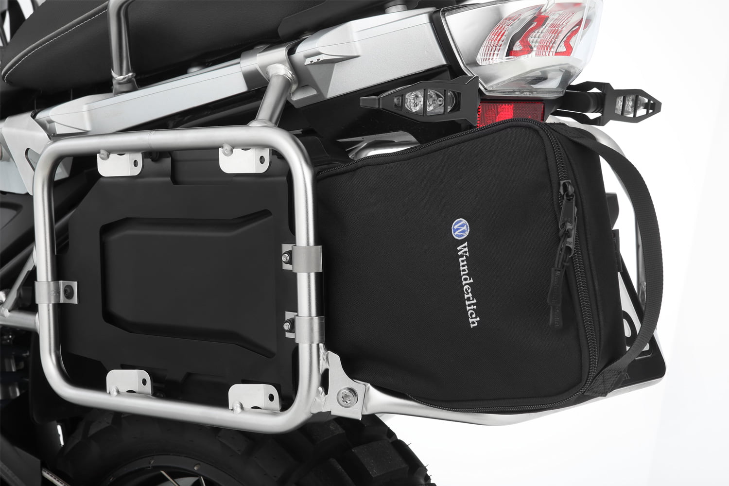 Onze op maat gemaakte gereedschapskist biedt extra opbergruimte voor allerlei handige kleine dingen en integreert perfect in de nis tussen het rechter bagagerek en het achterwiel. De functionele, robuuste box is voorzien van vier massief schroefdraad inzetstukken en wordt met een houder en bijpassende klemmen stevig op de standaard kofferdrager gemonteerd. Om altijd gemakkelijk toegang te hebben, kan het van achteren worden geopend en gesloten – zelfs met de koffers gemonteerd. De dekking is beveiligd tegen verlies. De box van hoogwaardig kunststof is waterdicht en extreem robuust. Wij leveren ze met de houder.