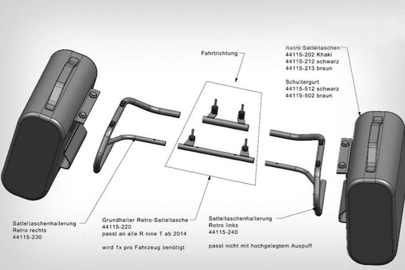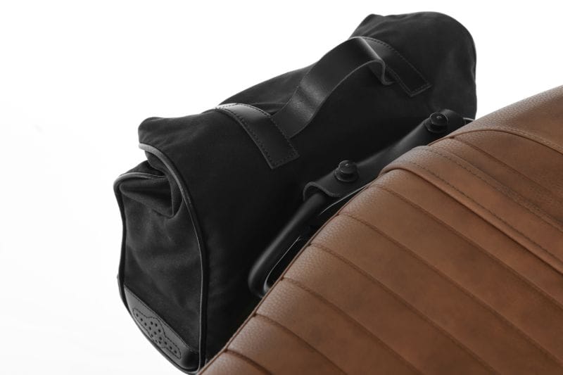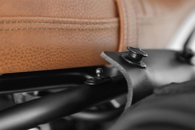 De tas wordt op het onderste deel van de houder geschoven en aan de bovenkant vastgezet met twee LOXX-sluitingen.