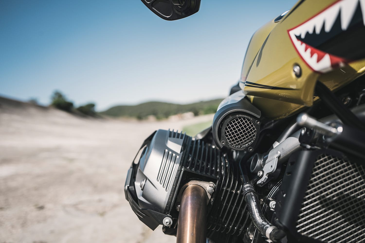 Racestijl uit de jaren 70 met effectief gebruik. Verandert de plastic zuigsnorkel in een designelement en voorkomt dat vliegen, bladeren etc. worden opgezogen.