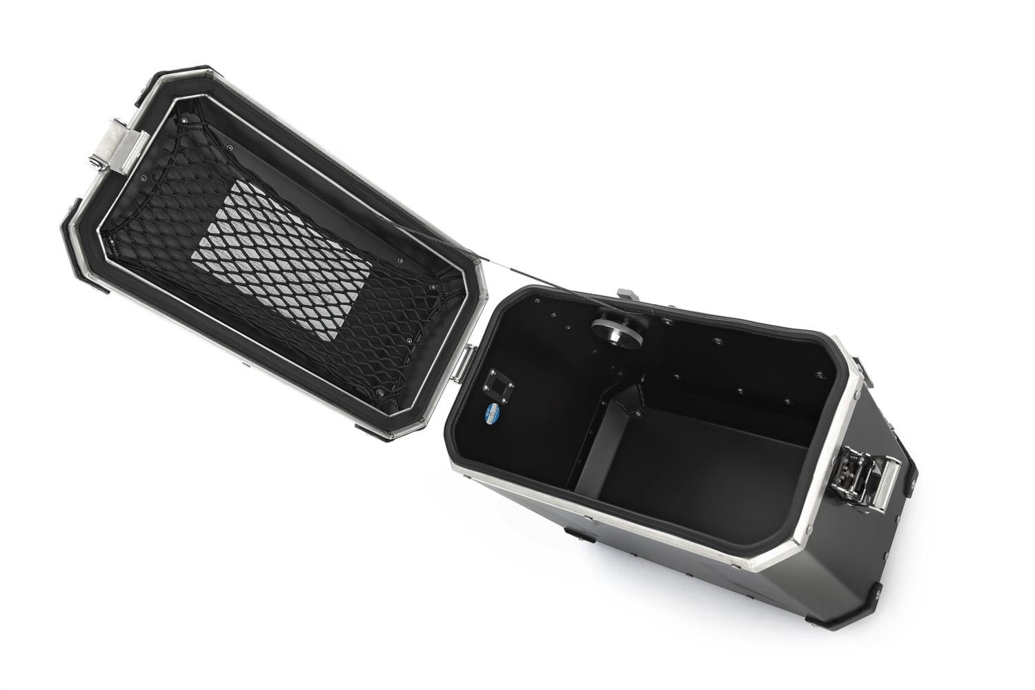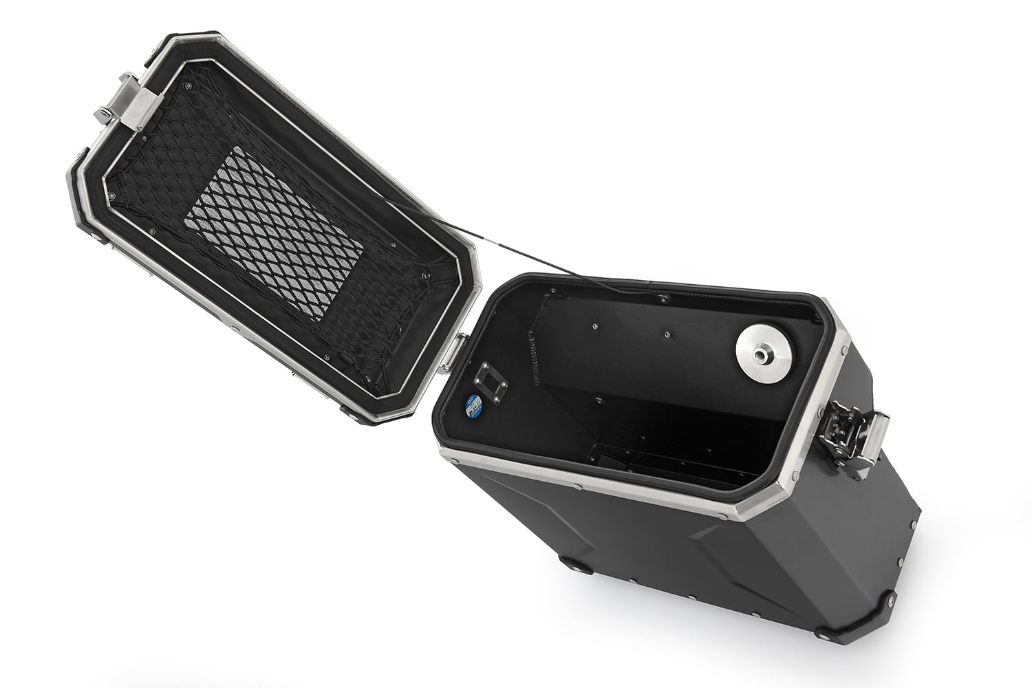 Dankzij de extra sjorogen op het deksel kunnen extra bagagestukken – zoals onze Rack Pack-tassen – veilig worden vastgebonden. De kofferdeksels zijn standaard voorzien van praktische bagagenetten aan de binnenkant, voor alles wat onderweg binnen handbereik moet zijn: regenkleding, gereedschap of een EHBO-doos.