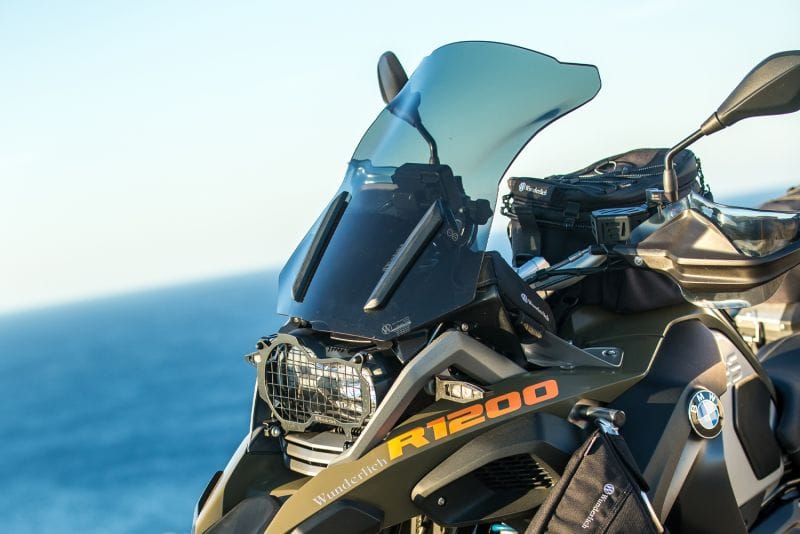 Onder normale wegomstandigheden (glad wegdek en tot 150 km/u) is het nog steeds stil. Op hobbelige wegen, bij hoge snelheden en/of tijdens offroadgebruik rammelt de originele bevestiging (met zowel de originele als de touring-windschermen) behoorlijk luid.