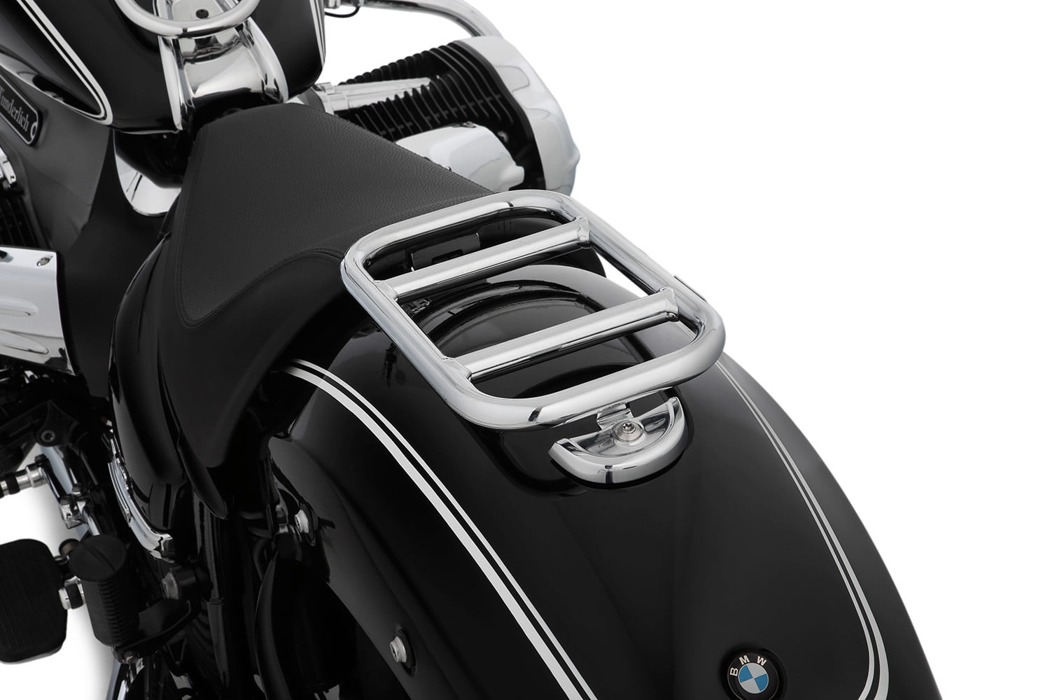 Het duidelijke basisdesign van het bagagerek zet dat van onze populaire tankrails voort, zodat beide reksystemen niet alleen de capaciteit voor het vervoeren van tassen of bagage merkbaar vergroten, maar elkaar ook qua stijl perfect aanvullen. Bijkomend voordeel: het gunstige zwaartepunt ondersteunt het heerlijk goedmoedige, neutrale rijgedrag van de BMW R 18.
