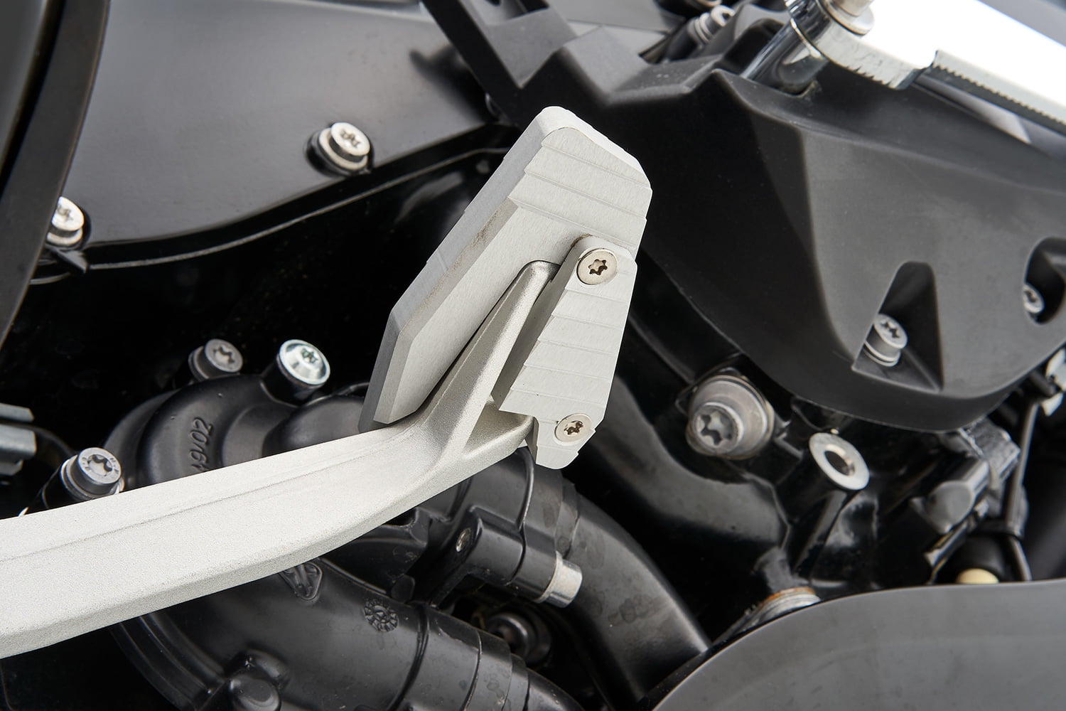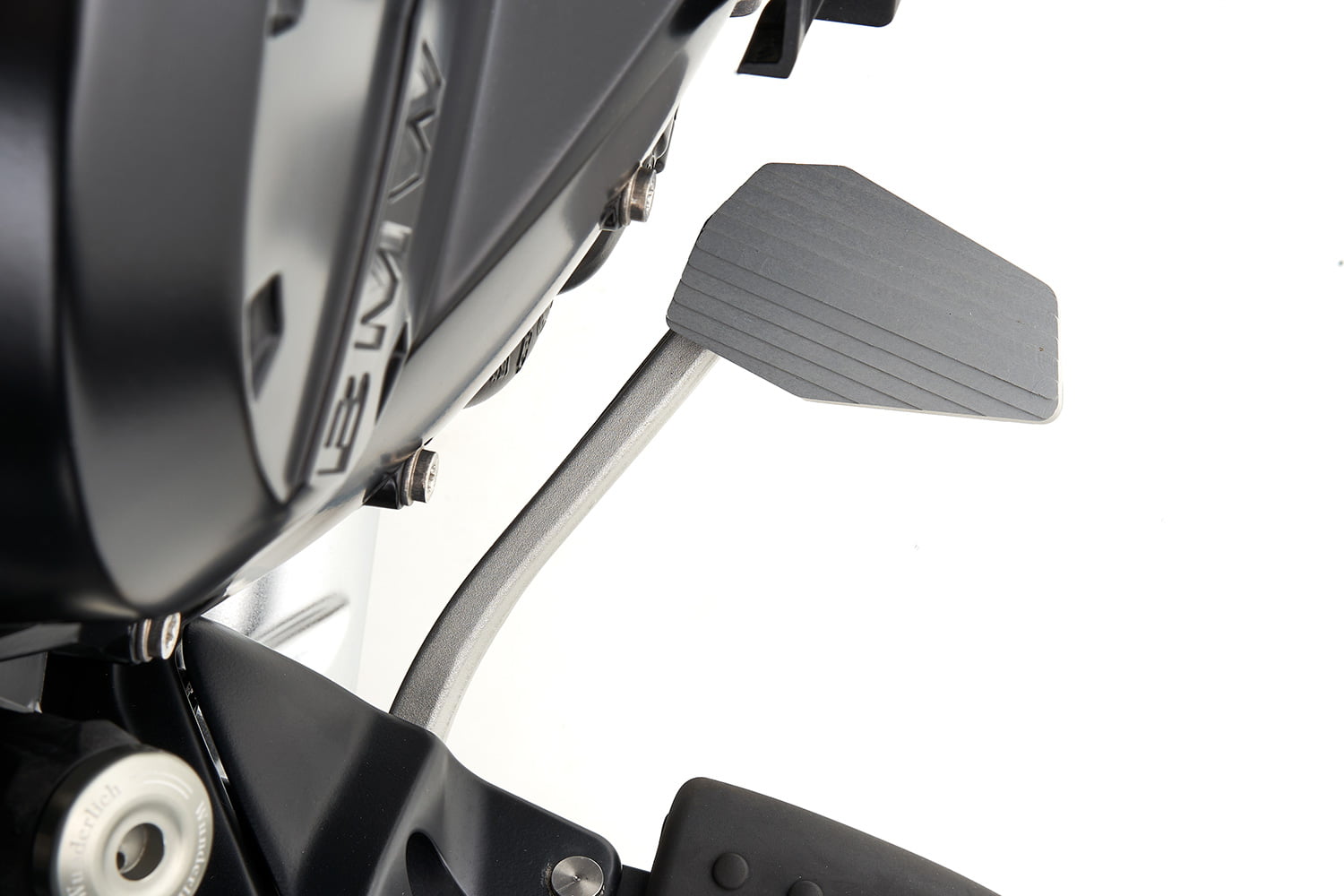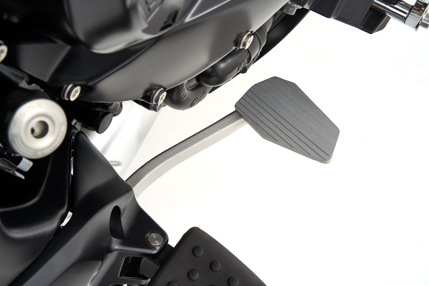 Wunderlich vergroting remhendel zilver voor BMW K 1600 GTL. Vergroot het voetgedeelte van de remhendel aanzienlijk tegen wegglijden
