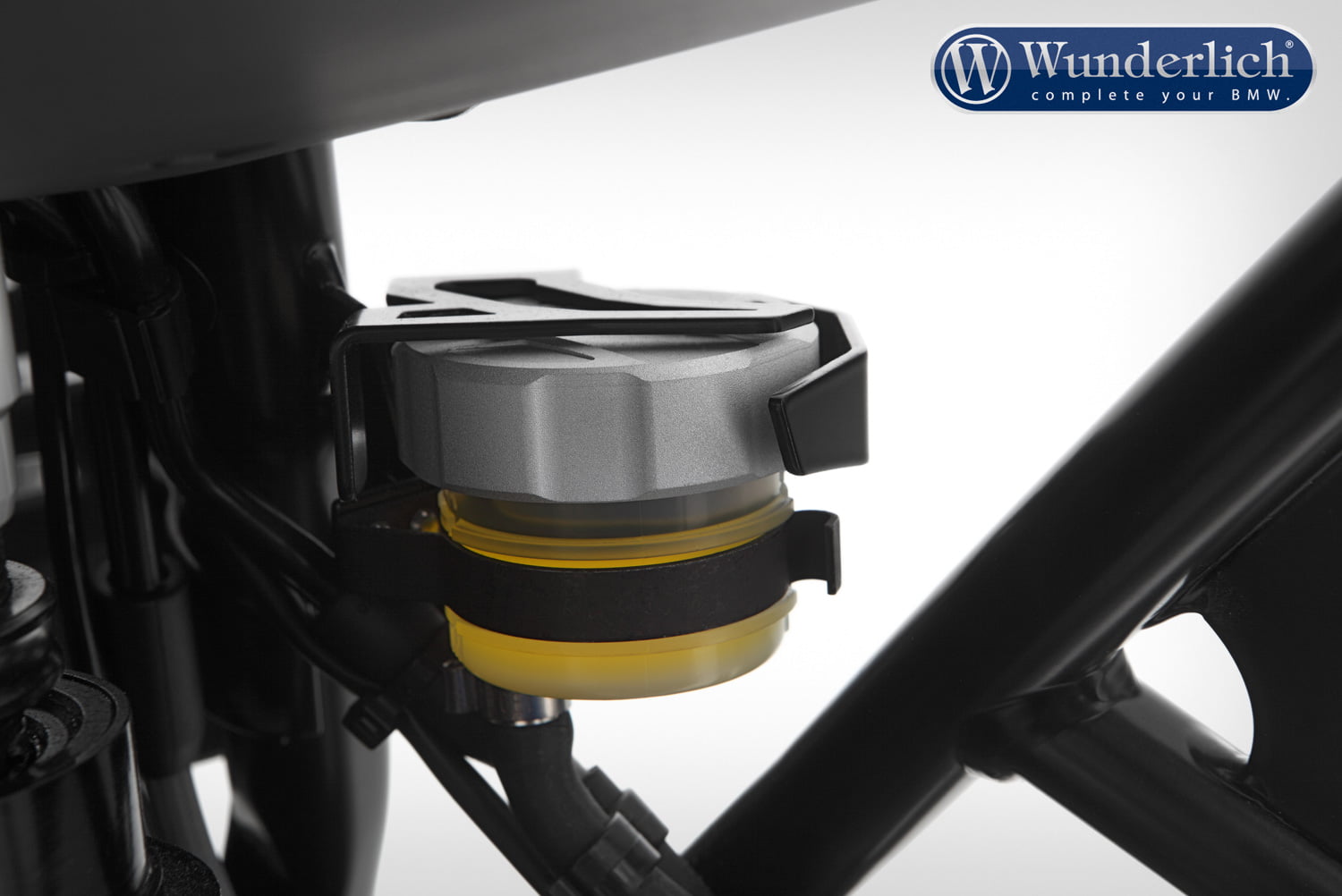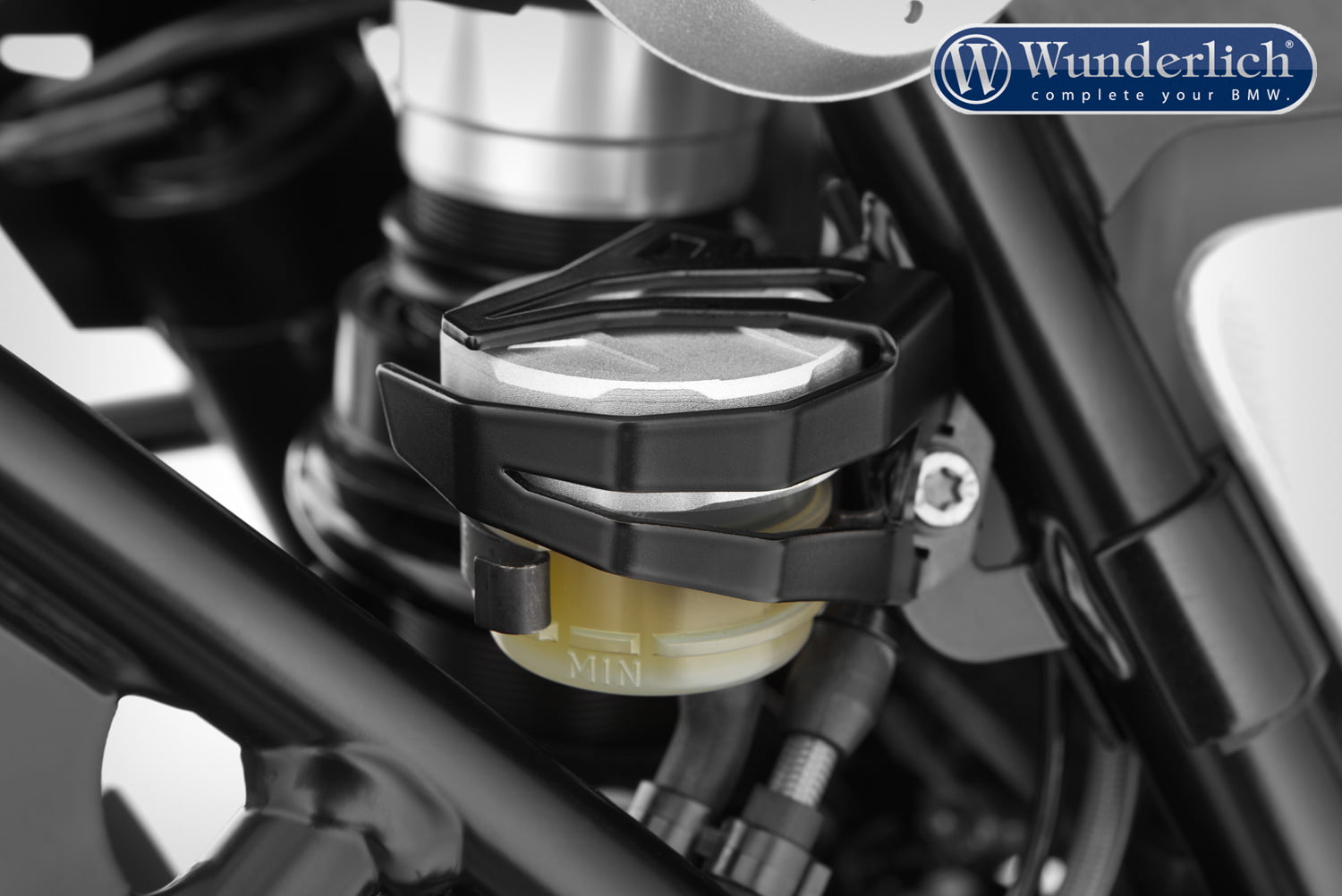 Het remvloeistofreservoir, vastgehouden door een simpele clip, kan uit de houder springen door onvoorzichtigheid of een klap.
