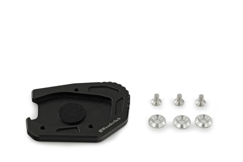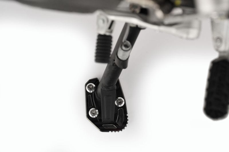 De Wunderlich zijstandaardvoetvergroter verkleint het risico dat uw Ducati Multistrada V2 langzaam en ongemerkt wegzakt in zachte ondergrond of heet asfalt.
