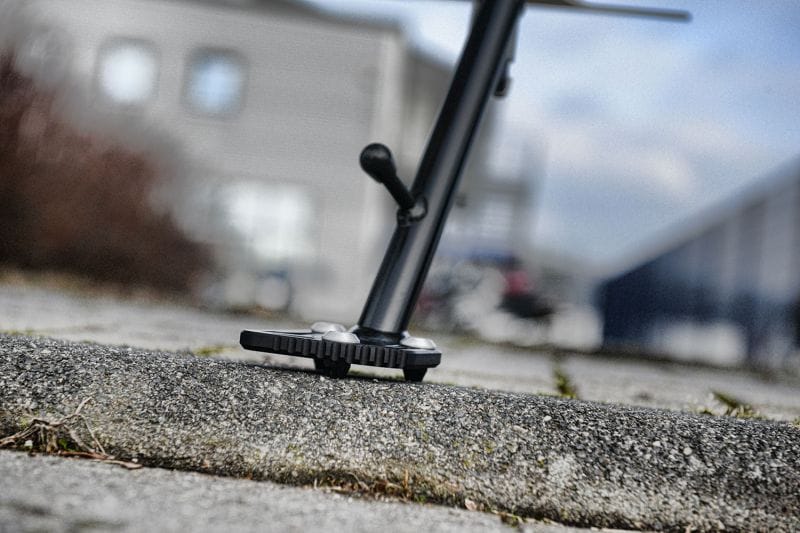 Onze spikes voor het vergroten van de voet van de zijstandaard grijpen stevig in de grond – vooral op asfalt of gras – waardoor het risico dat de standaard wegrolt, afneemt. Als de spikes in de grond zakken en erin grijpen, voorkomt de vergroting verder wegzakken.