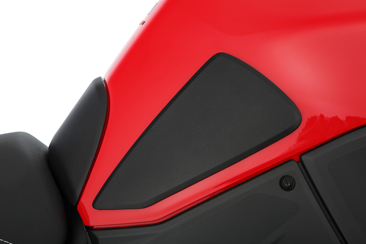 De tankbeschermingspadset is precies afgestemd op het ontwerp en de lijnen van de Ducati Multistrada V4. De pads voor de rechter en linker tankflanken beschermen de contactpunten op de tank effectief tegen krassen, schuren of schuren. Tegelijkertijd verbeteren ze de kniegrip en zorgen ze dankzij de verhoogde grip voor een merkbaar beter contact met de motorfiets tijdens het rijden. Dit verhoogt de rijervaring en het rijplezier aanzienlijk. De pads zijn gemaakt van hoogwaardig, antislip zwart plastic dat schokabsorberend is en een licht korrelige textuur heeft. De pads zijn zelfklevend en eenvoudig aan te brengen.