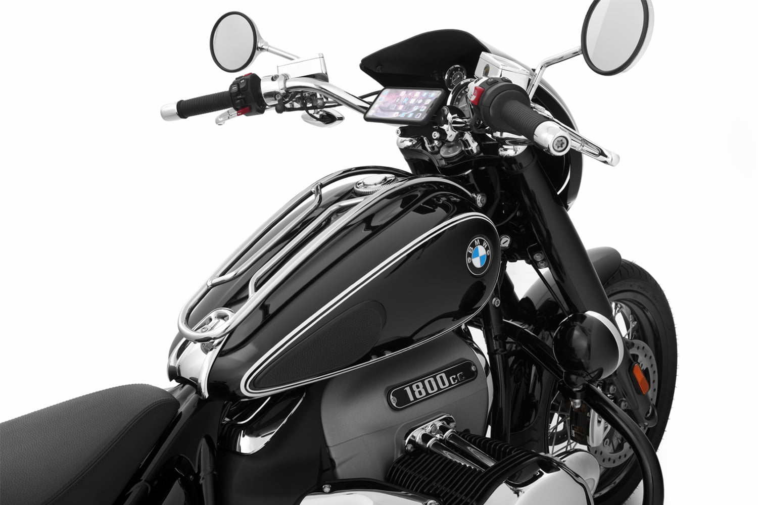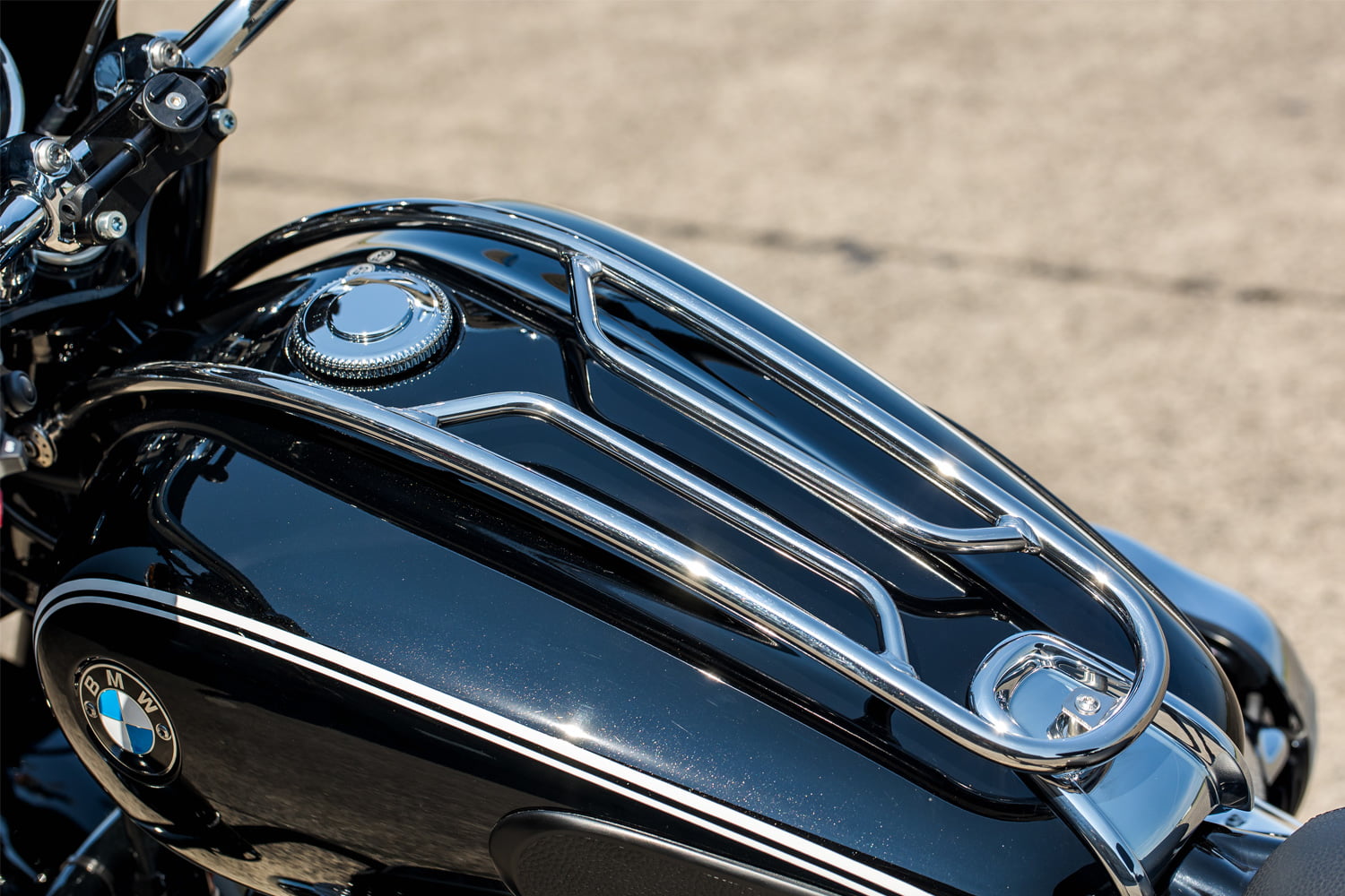 Wij raden onze hoogglanzende, verchroomde tankrails aan aan alle R 18-rijders die het contrast tussen chroom en diepglanzend zwart gelakte oppervlakken willen benadrukken. Ideaal in combinatie met onze verchroomde componenten en accessoires.