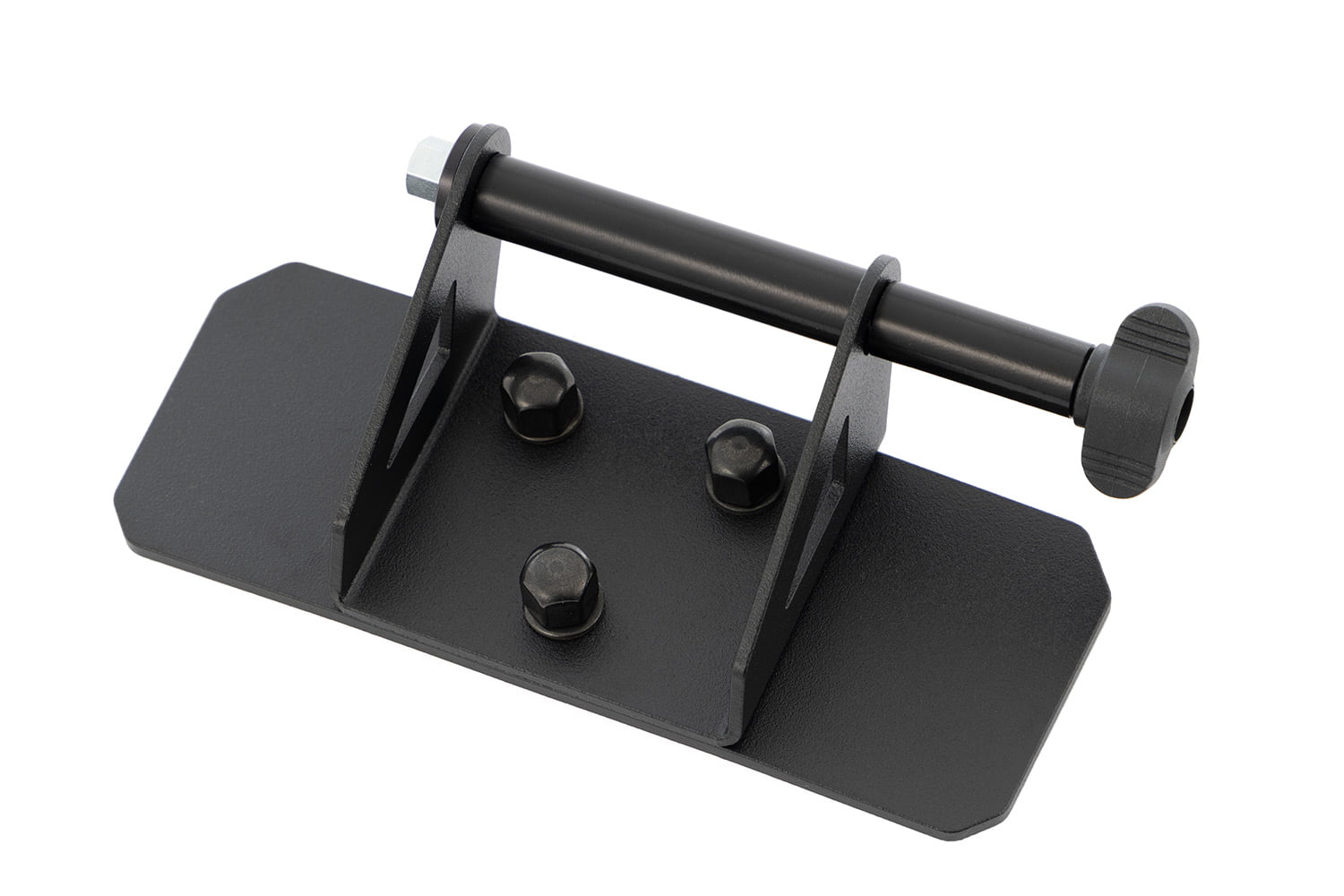 De uitrustingsdrager wordt centraal op de stuurbrug bevestigd met behulp van een grote 3M-kleefpad. De apparatuurdrager is gemaakt van zwart gepoedercoat roestvrij staal.