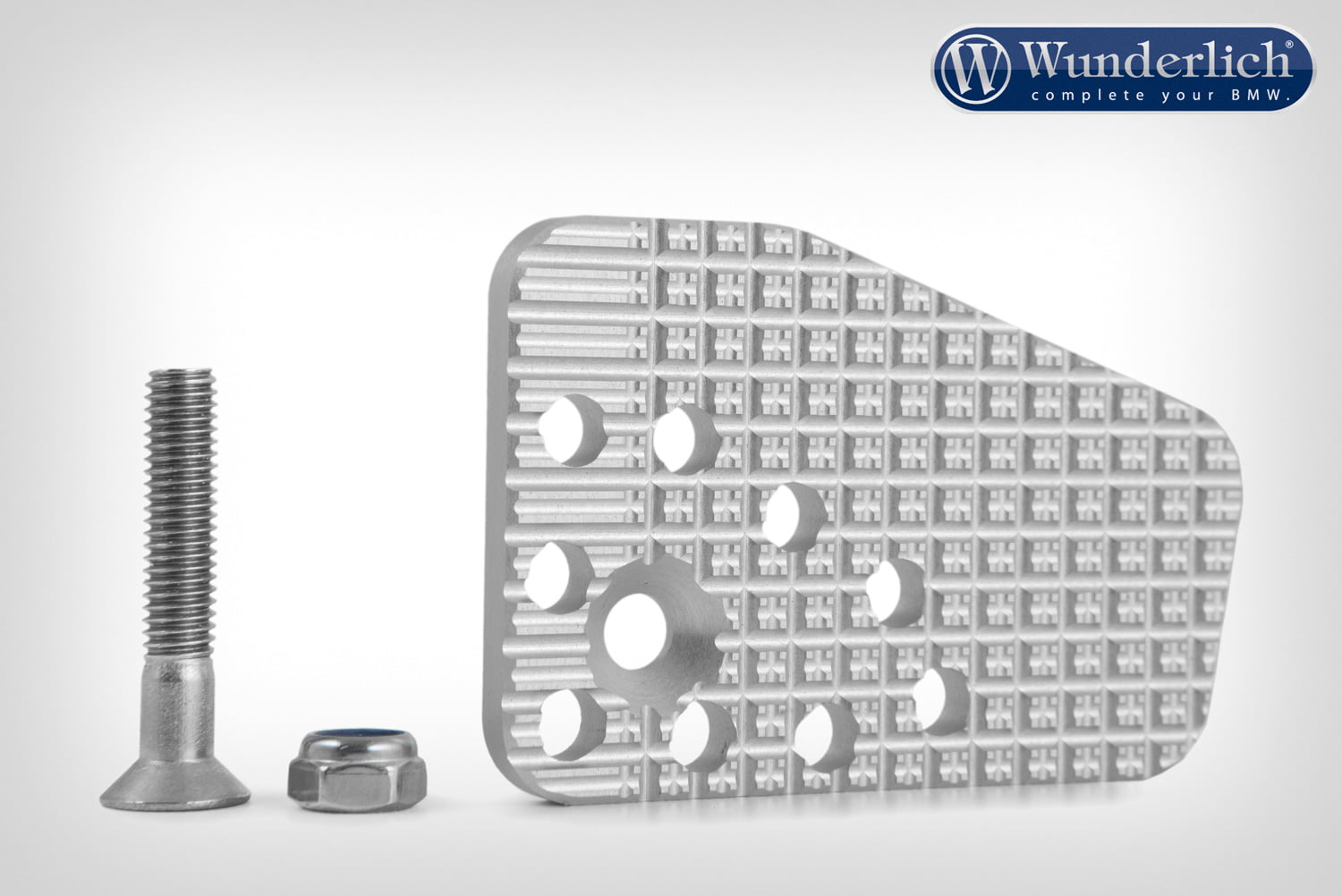 Deze verbreding van de voetremhendel dient als aanvulling op onze remhendel 26221-003. Hij wordt eenvoudig op onze hendel geschroefd. Het per ongeluk wegglijden of het missen van de hendel en de bijbehorende “trap in de ruimte” is bijna onmogelijk, niet alleen bij offroad-gebruik. De gefreesde golving zorgt voor slipweerstand onder natte omstandigheden en onvermijdelijk vuil off-road. De verbreding verbetert de ergonomie en het comfort en verhoogt daarmee de passieve veiligheid, niet alleen voor offroad-gebruik.
