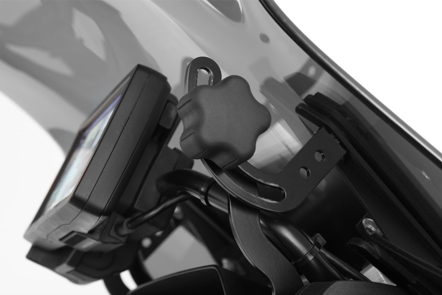 De raamversteviging wordt tussen de originele raamhouder en het raam bevestigd en tevens aan de zijkant van de koplamphouder geschroefd. De originele beugel is versterkt en ondersteund om trillingen van het raam te minimaliseren.
