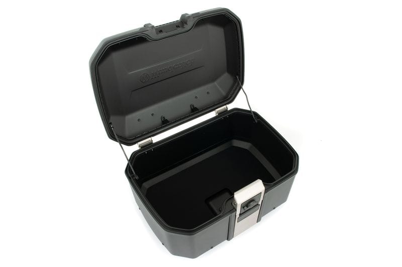 Dankzij de vier bevestigingsogen op het deksel kan extra bagage veilig worden vastgemaakt en vastgezet. De binnenkant van de topkoffer is bekleed met hoogwaardig, antislip, schokabsorberend schuim, wat de inhoud beschermt tegen trillingen en schokken.
